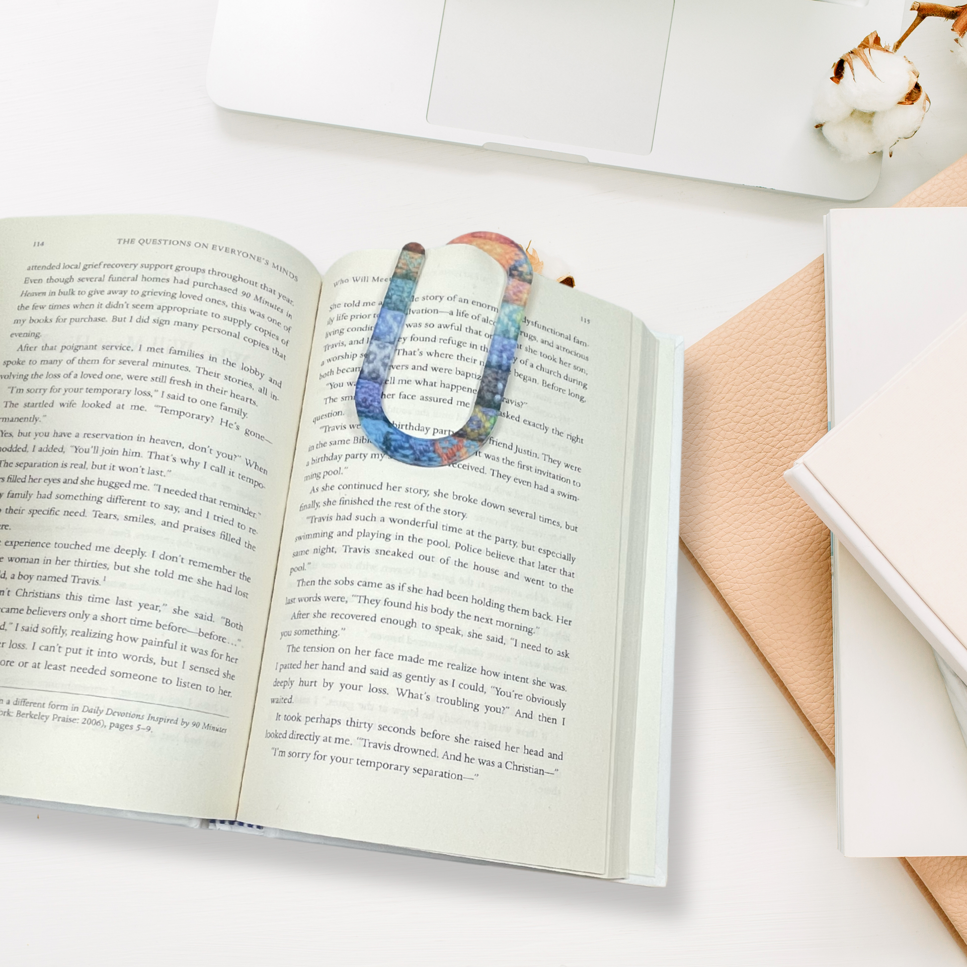 Organize your papers and photos with ease using our Bright Blankets Jumbo Paperclip. Its bright-colored stack of knit blankets ranging from reds to blues, adding a touch of personality to any workspace. Made of durable acrylic, this 4x2 inch clip is also perfect for use as a bookmark. Stay organized in style!