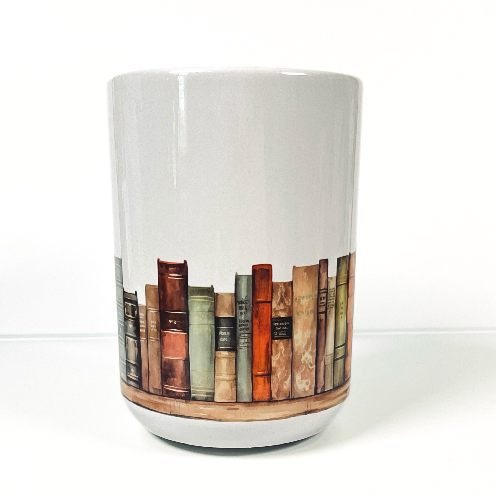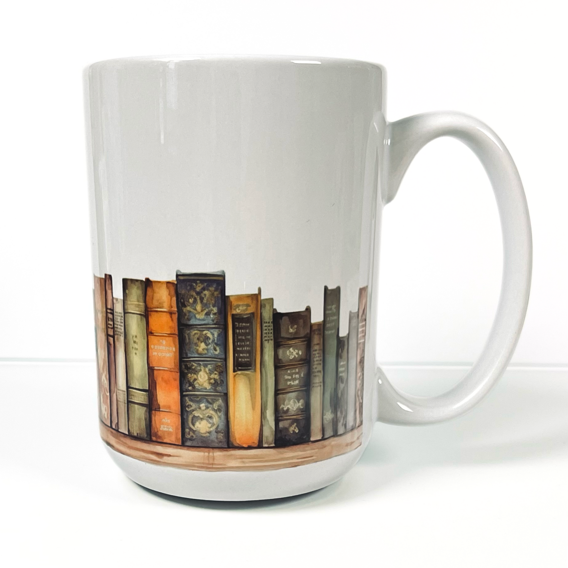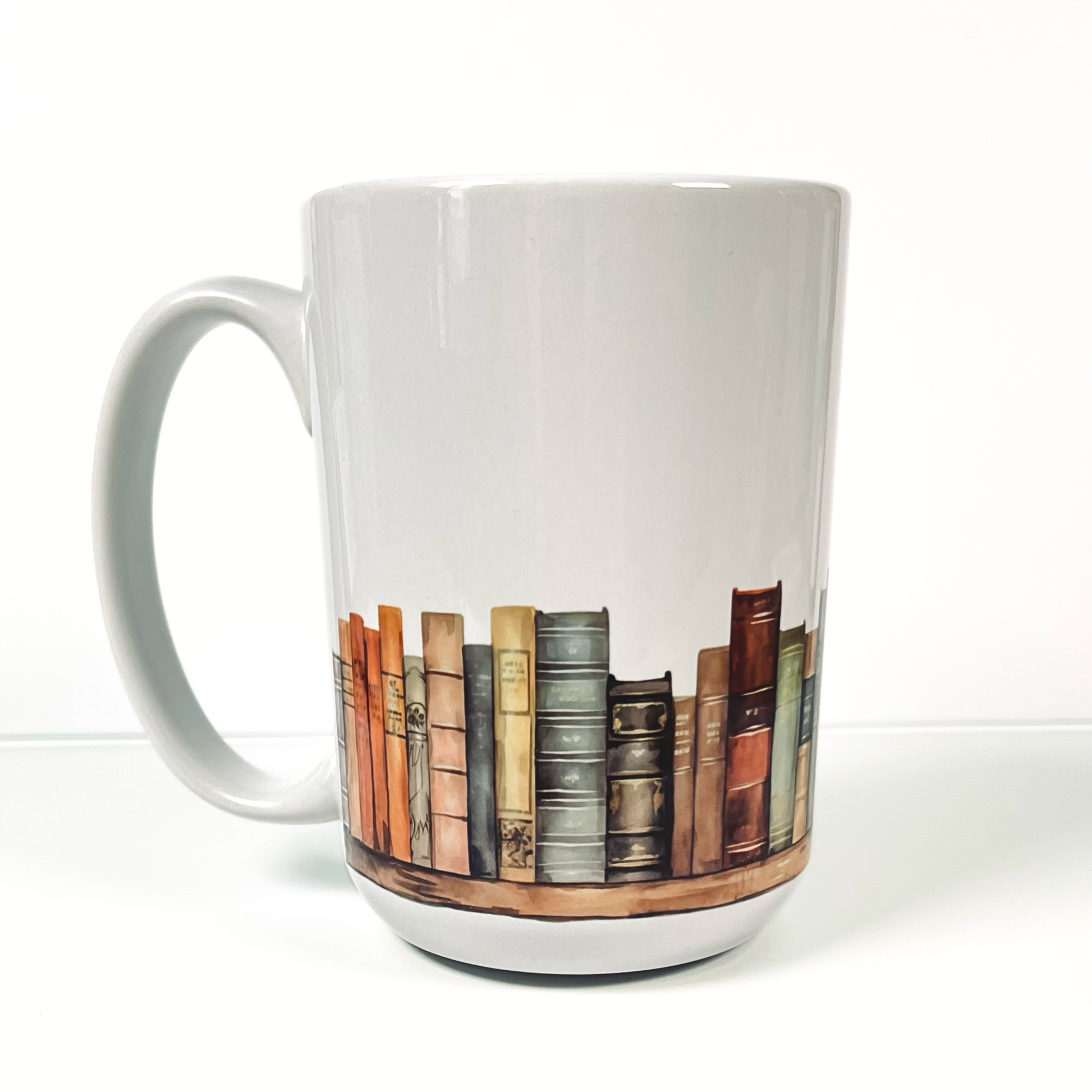 Experience the timeless elegance of our Ceramic 15 oz Mug, featuring a classic design of books on a shelf. Enjoy your favorite beverage in style, while adding a touch of sophistication to your daily routine. Indulge in the luxurious feel of this exclusive mug, perfect for any book lover.