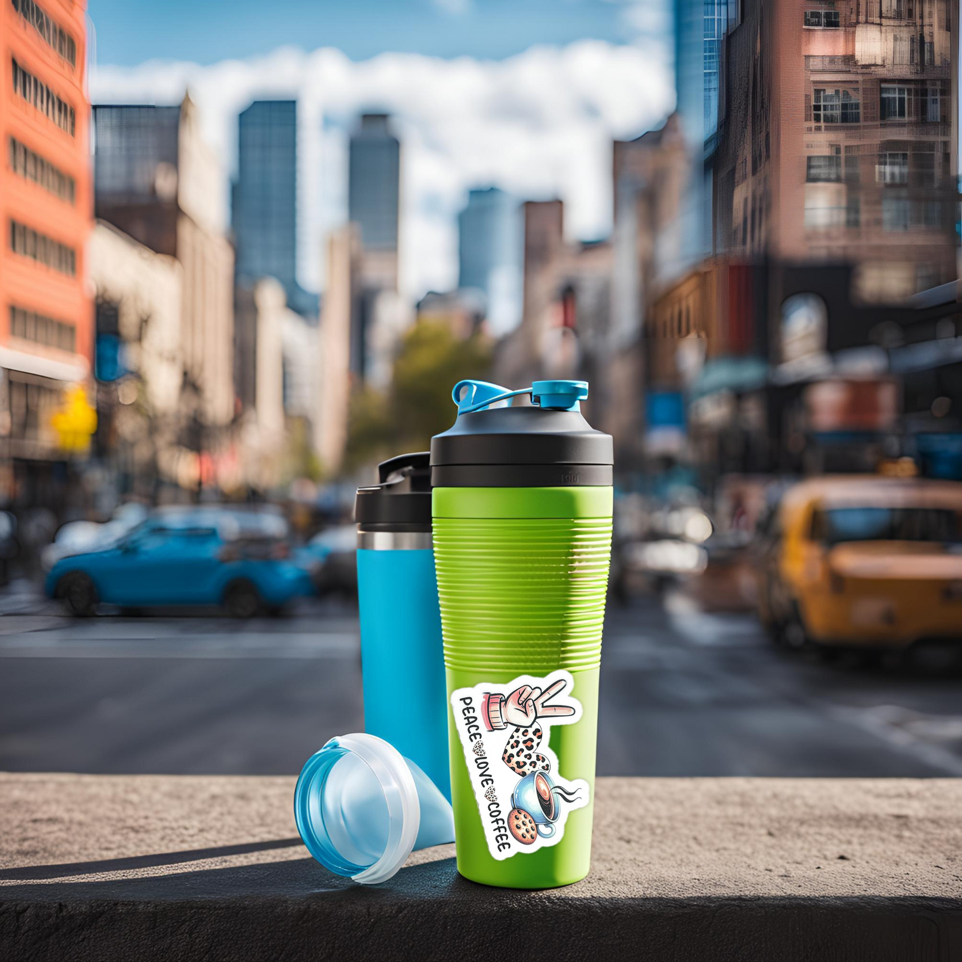 Spice up your laptop or water bottle with the Pease Love Coffee sticker! This die-cut sticker features a cheetah heart, finger peace sign and a cookie, representing your love for coffee and good vibes. Waterproof and 3 inches, it's perfect for coffee lovers who want to spread some peace and joy (while also showing off their quirky side).