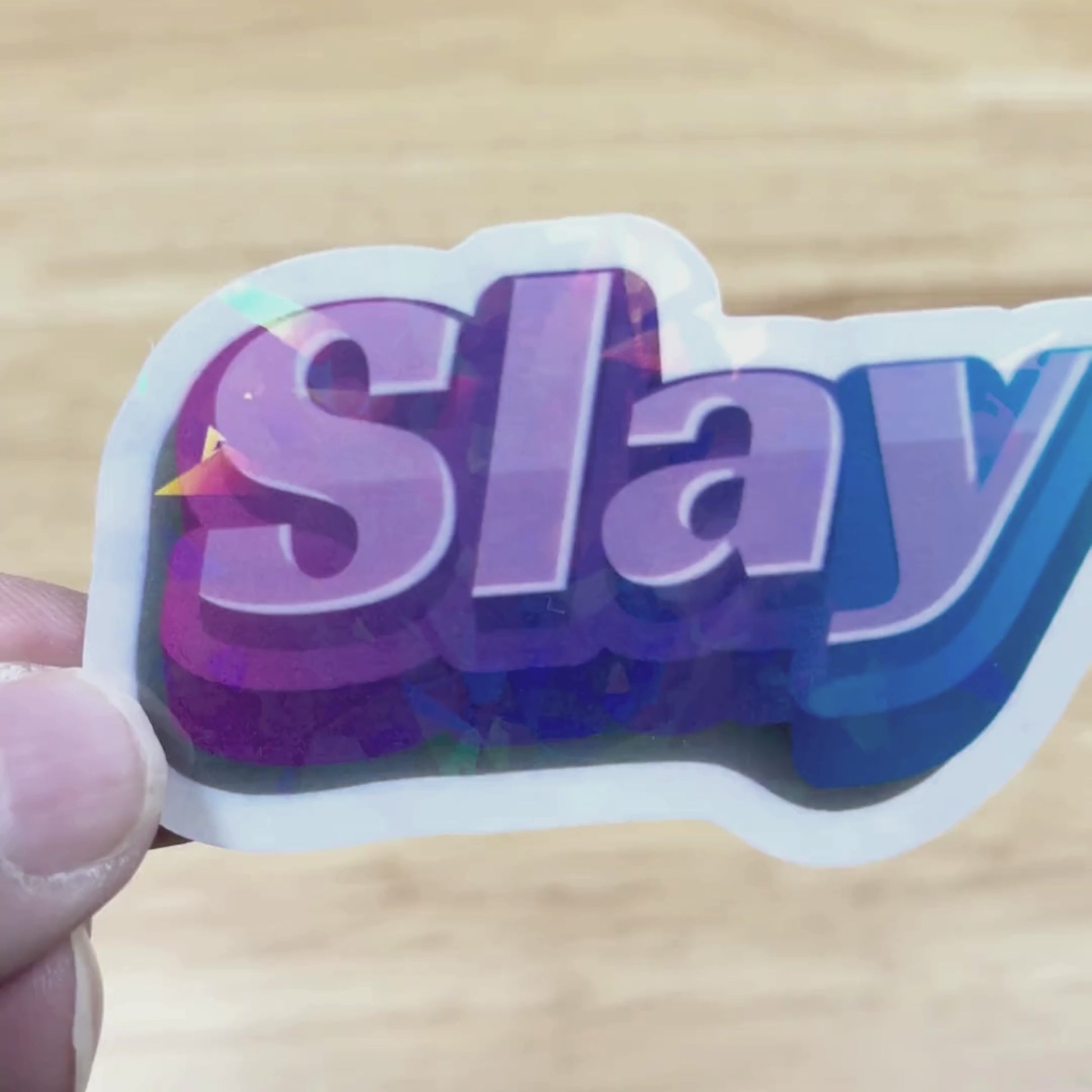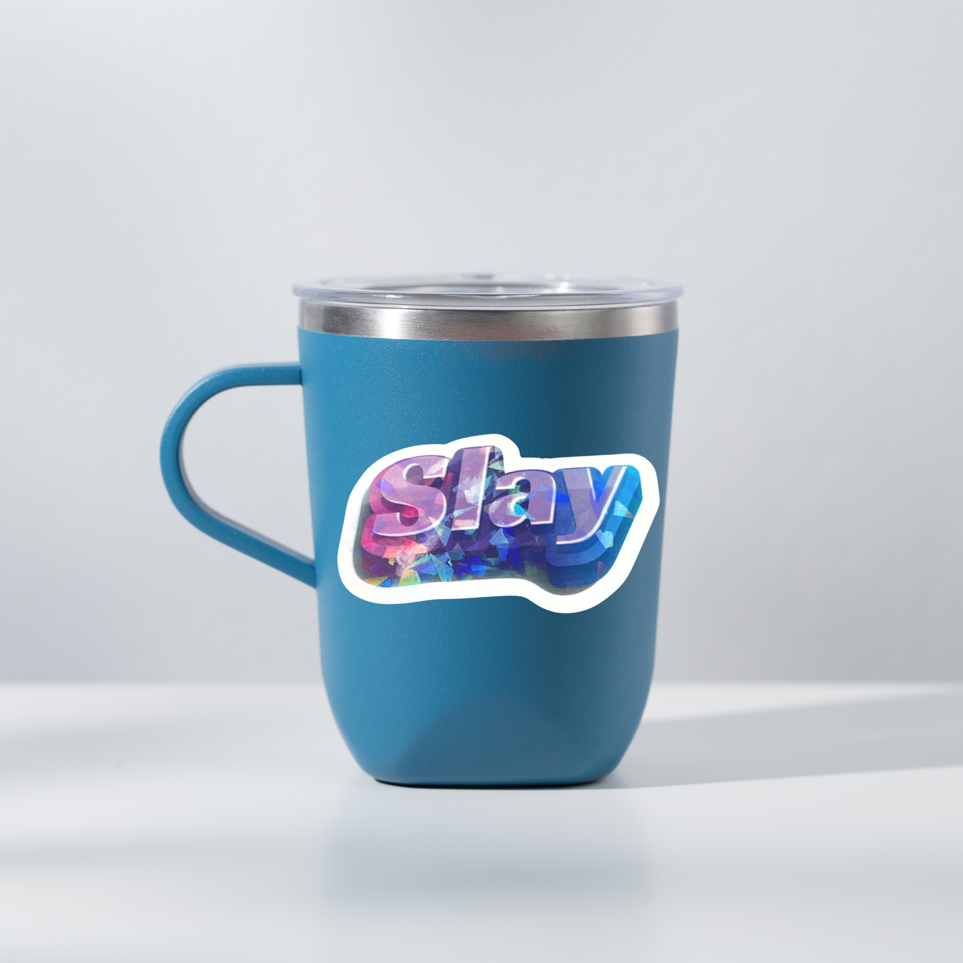 Unleash your boldness with our Purple "Slay" Holographic Die-cut Sticker! This 3-inch sticker boasts a stunning purple gradient and a waterproof design to withstand any adventure. Perfect for showing off your love for pop culture and adding a touch of risk-taking to any surface.